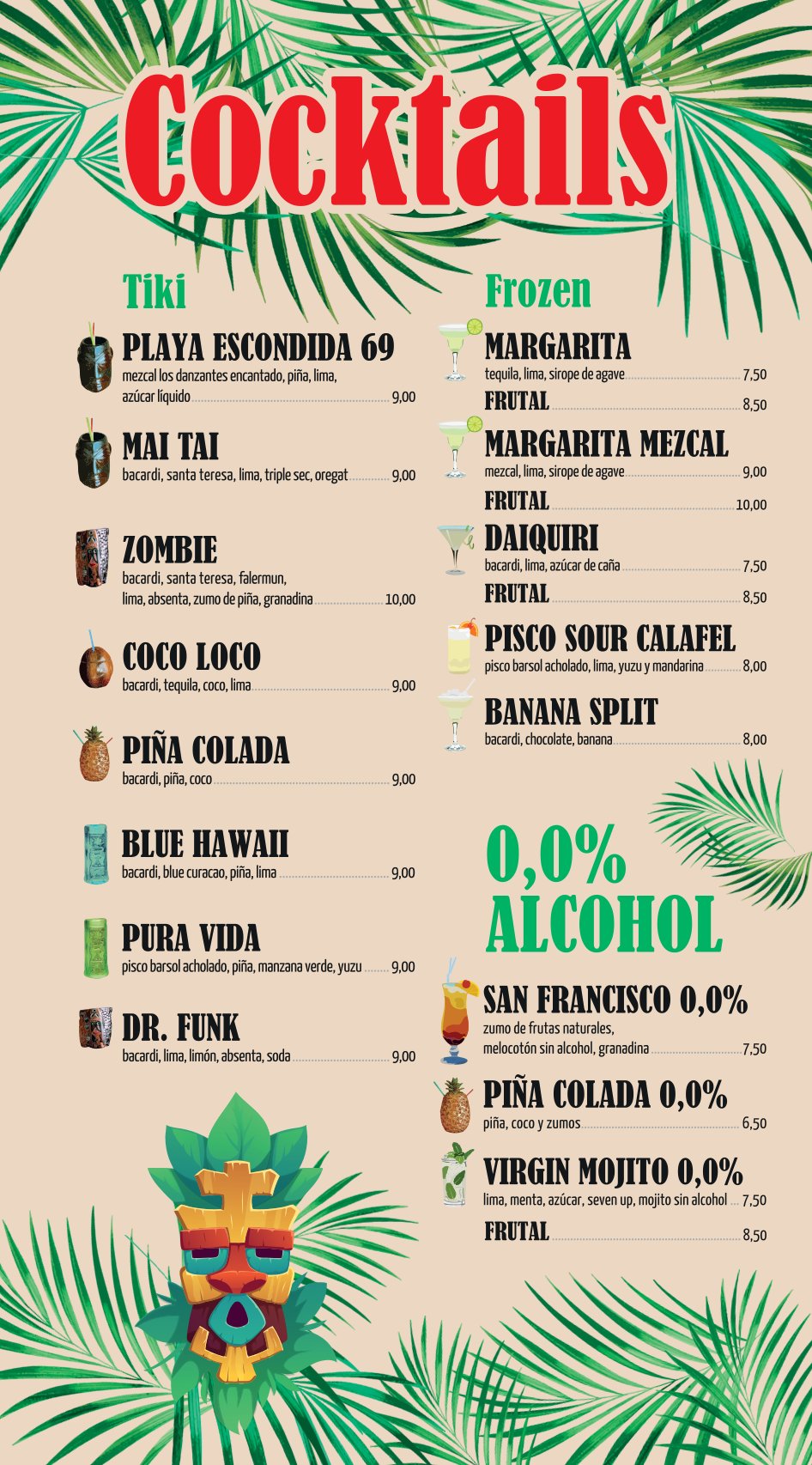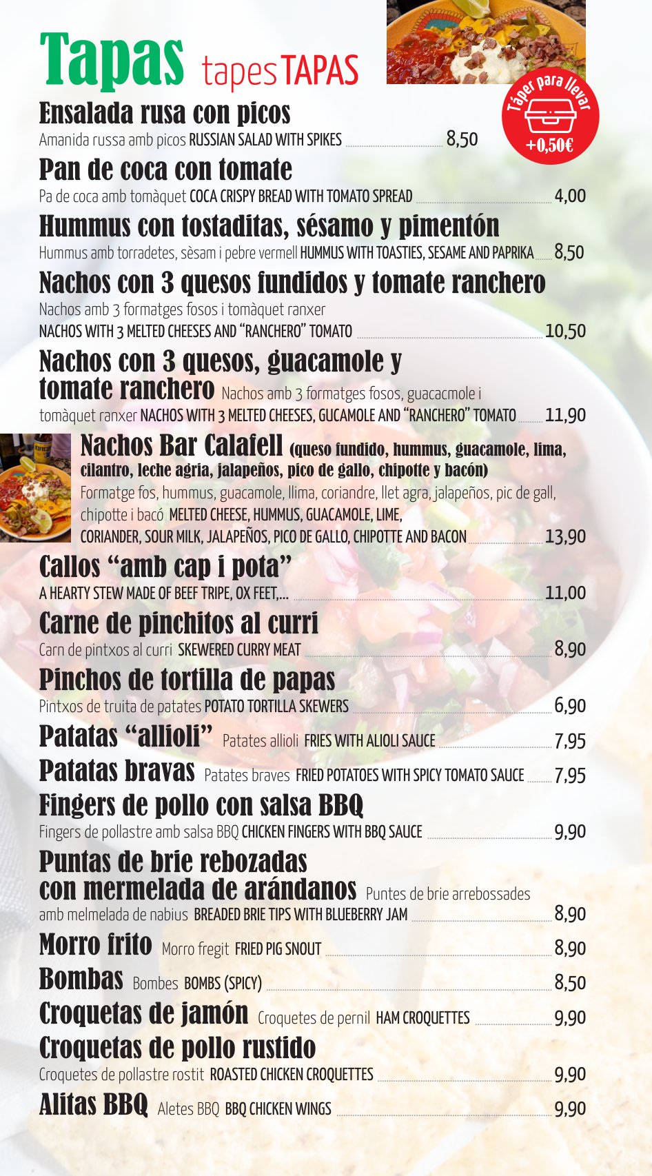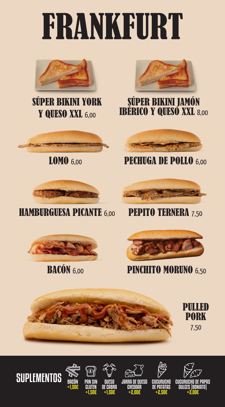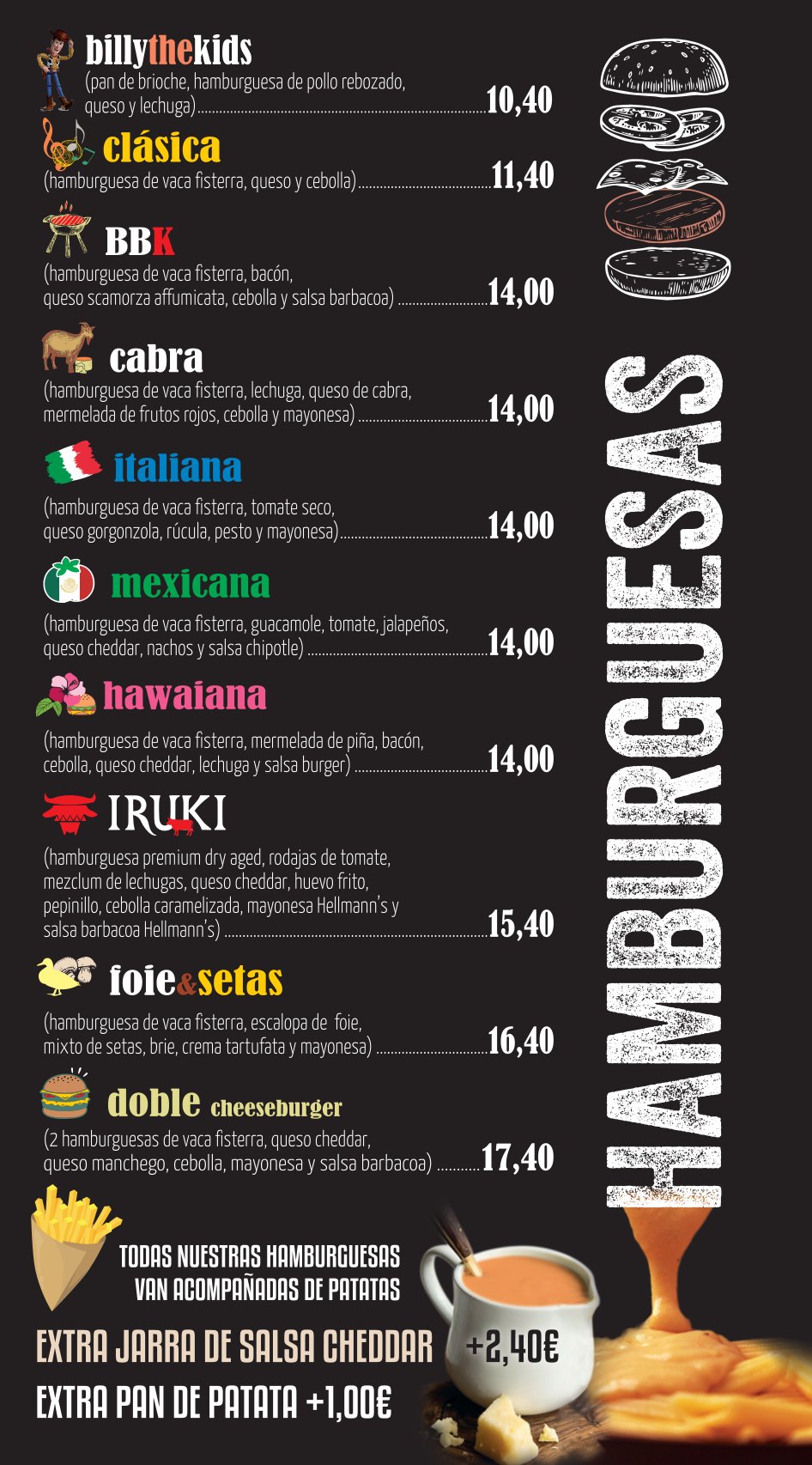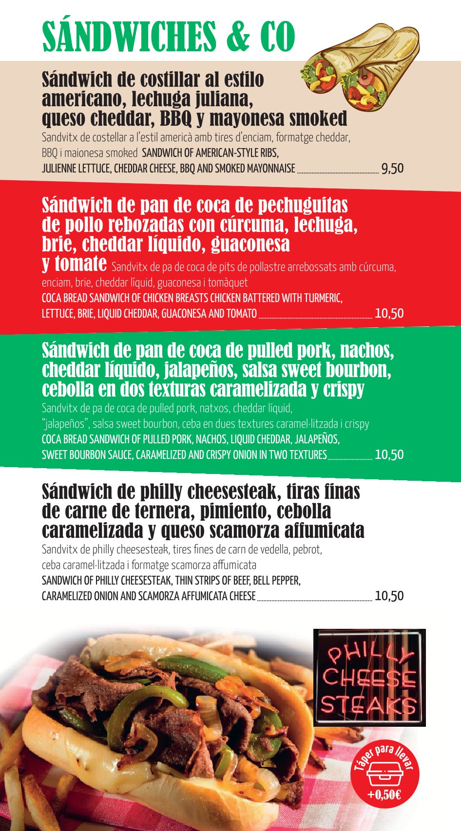 DESCUBRE NUESTRA CARTA DE VINOS VERMOUTH TAPAS ENSALADAS Y TORRADAS HAMBURGUESAS SÁNDWICHES FRANKFURT EMBUTIDOS Y QUESOS PLATOS COMBINADOS CERVEZAS CREPES, GOFRES Y PANCAKES CON FRUTA, HELADO, SIROPE… HELADOS, POSTRES, BATIDOS, GRANIZADOS Y SMOOTHIES CAFÉS, FRAPPÉLATTE Y CAFÉS COMBINADOS